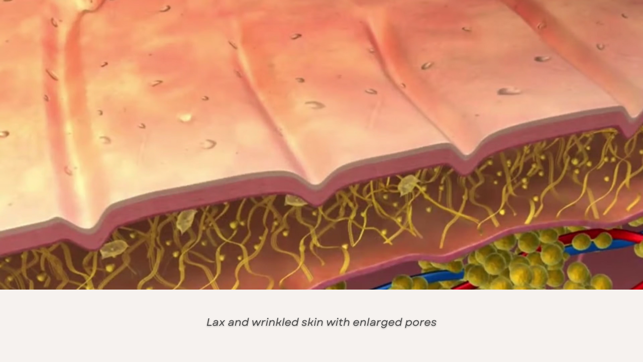 The laser energy passes through the skin to the deeper layers of the dermis which remodels existing collagen fibers and stimulates fibroblasts.